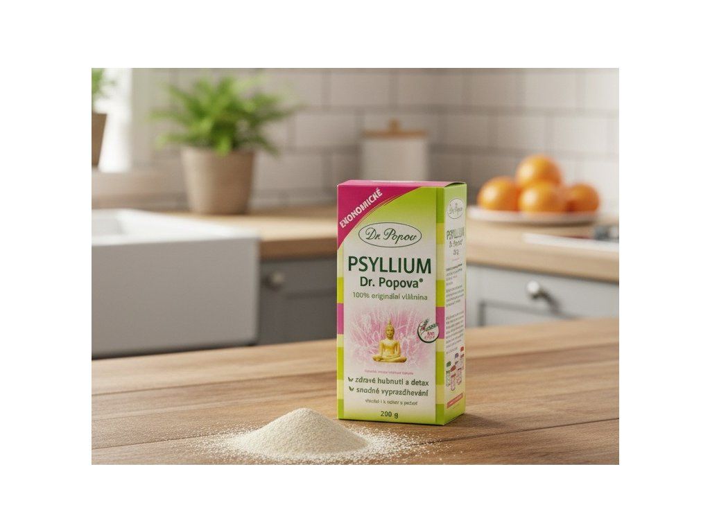 Psyllium Dr. Popova zvyšuje denní spotřebu vlákniny. Pokud užíváte vlákninu psyllium nalačno, snadněji dochází k pocitu zasycení, aniž byste zvýšili svůj kalorický příjem. Tohoto efektu se využívá při redukčních dietách.