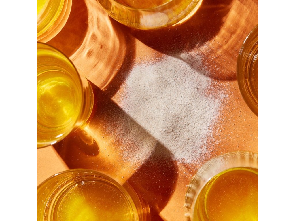 Mezi ně patří kolagenní peptidy Verisol®P , jež stimulují metabolismus kůže a účinně působí proti ztrátě kolagenu v důsledku stárnutí a agresivních vnějších vlivů. Verisol viditelně snižuje hloubku vrásek, redukuje celulitidu, zlepšuje pružnost pokožky a podporuje růst nehtů. Další patentovanou látkou jsou ceramidy z rýže ORYZA, které mají velkorysé hydratační vlastnosti a účinně posilují ochrannou bariéru pokožky, jež funguje jako štít před působením vnějších vlivů prostředí jako znečištění či UV záření. Třetím patentem se pyšní kyselina hyaluronová HAPLEX®Plus s nízkou molekulární hmotností. Díky tomu se snadno a efektivně vstřebává a výrazně zvyšuje elasticitu pokožky. Prakticky okamžitě také startuje regenerační procesy v pleti a vyhlazuje jemné linky i vrásky. Prebiotika nové generace BioEcolians® harmonizují střevní mikroflóru, která přímo ovlivňuje stav, krásu a spokojenost pokožky.