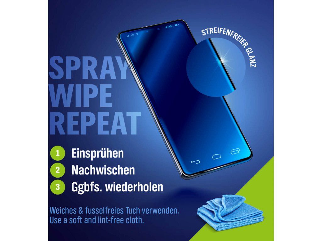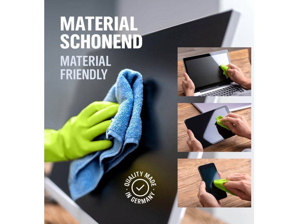Složení bez zápachu, alkoholu a čpavku se snadno používá s hadříkem z mikrovlákna.