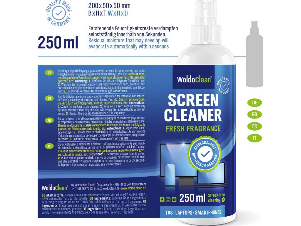 WoldoClean® Čistící roztok na obrazovky, 250ml