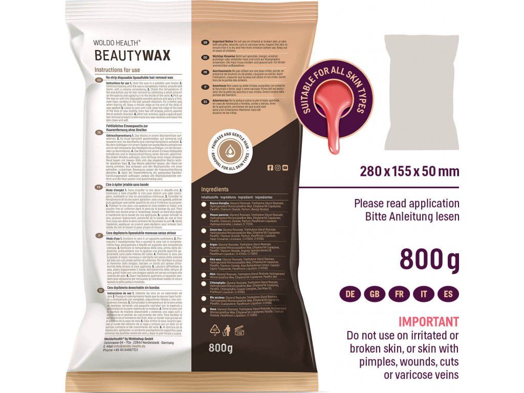 WoldoHealth® Depilační vosk zrnka Rose, 800g