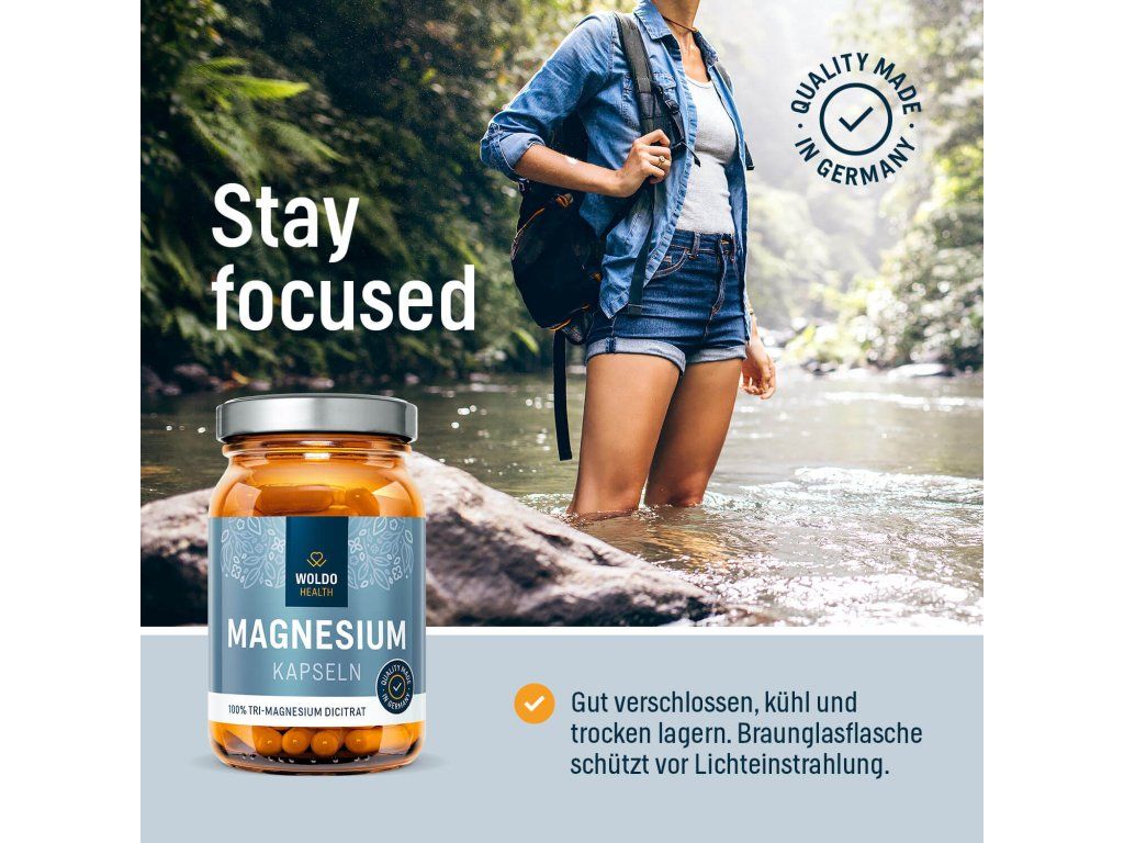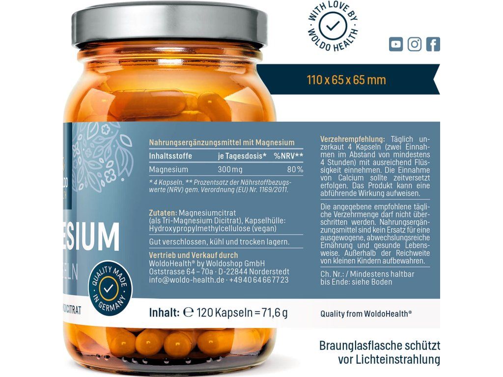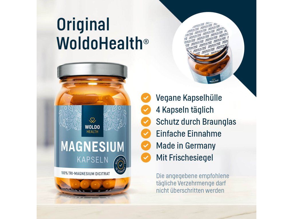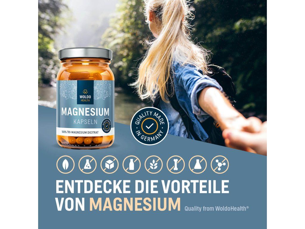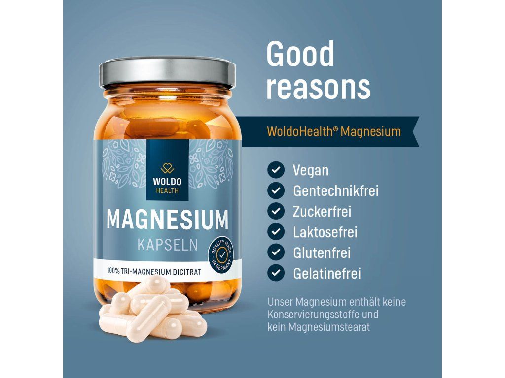 WoldoHealth® Hořčík Tri-Magnesium dicitrát, 120kapslí + Dárek