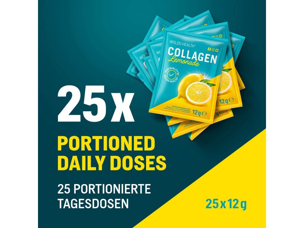 WoldoHealth® Mořský a hovězí kolagen Citronáda, 25x12g