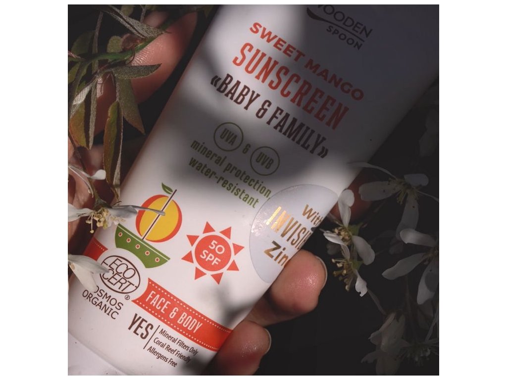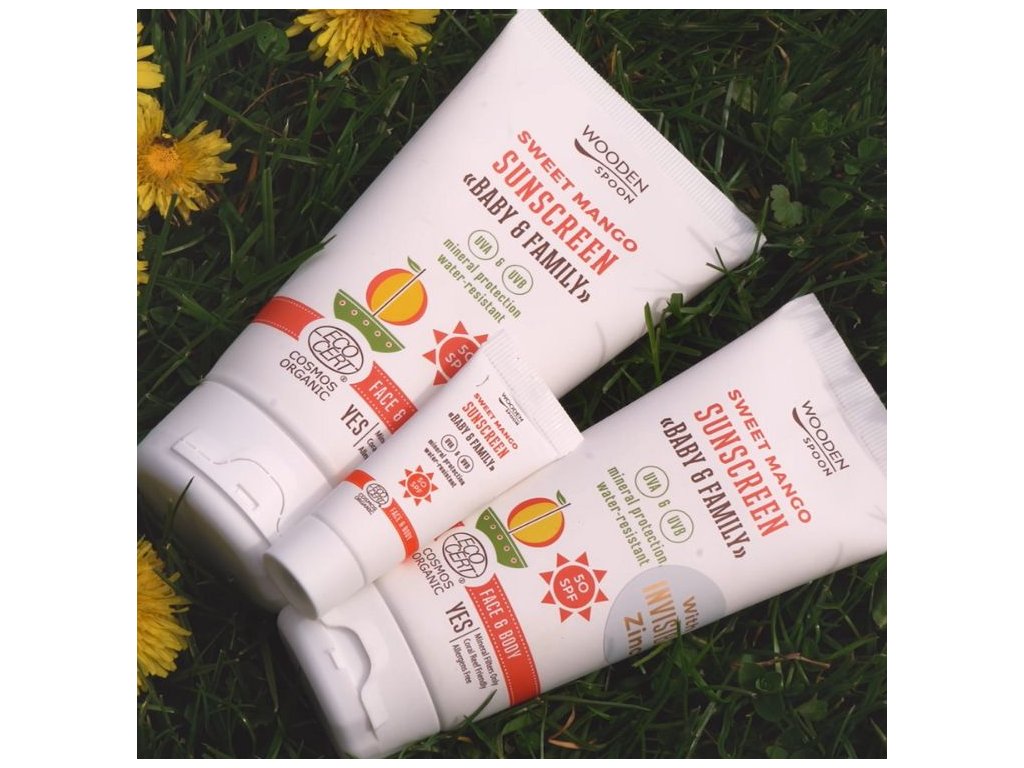 Wooden Spoon Opalovací tělové mléko Mango Baby & Family SPF50, 100ml