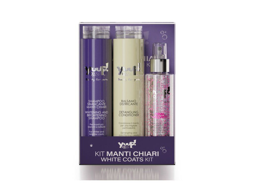• Bělící a rozjasňující šampon pro psy Yuup HOME 250 ml – jemně myje, neutralizuje nežádoucí žluté odstíny a zvýrazňuje přirozenou bílou barvu srsti.