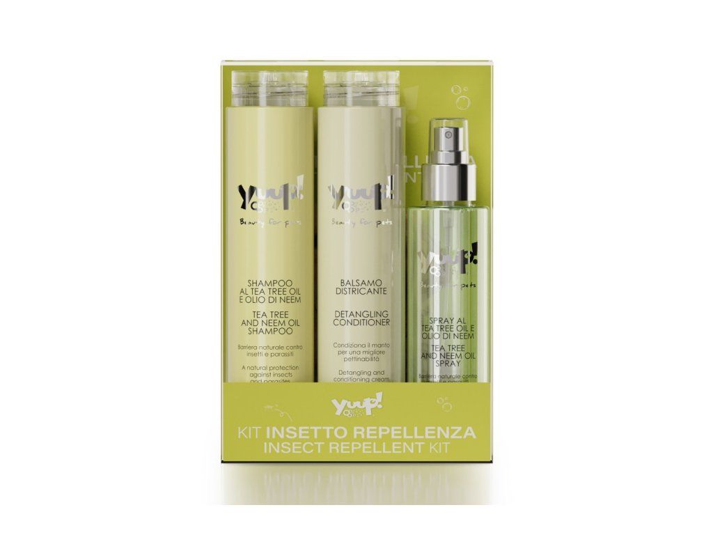 • Tea Tree a Neem oil šampon Yuup HOME 250 ml – šetrně čistí srst a pokožku, přitom poskytuje přírodní ochranu proti parazitům.